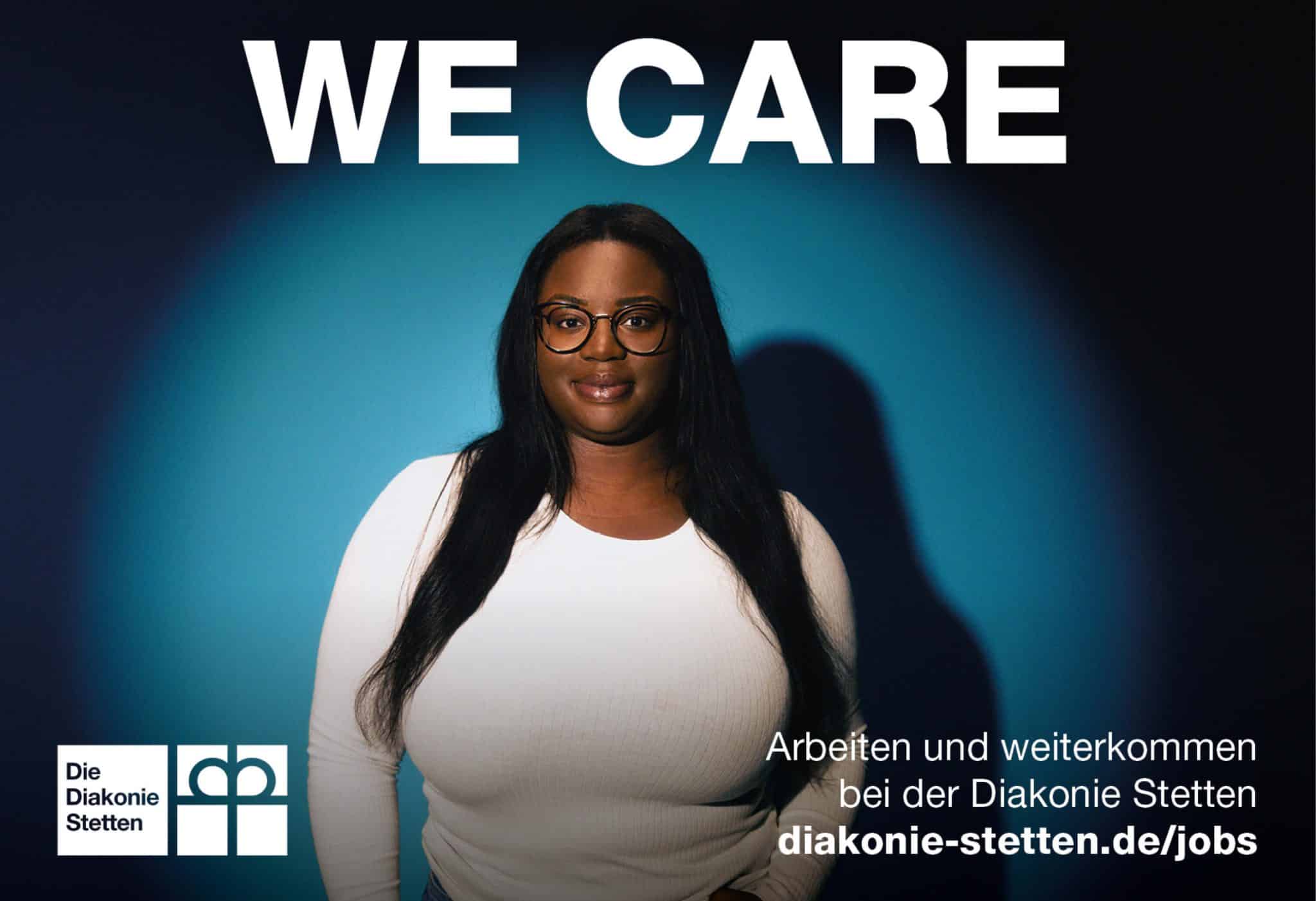 Als externer Dienstleister wurde die Marken- und Kommunikationsagentur JoussenKarliczek an Bord geholt. Auf ihrer Website schreibt sie zum Case: „In einem gemeinsamen Marken-Workshop haben wir die Employer Value Proposition (EVP) der Diakonie Stetten herausgearbeitet. Wenn man so will, den Haupt-Benefit für die Beschäftigten. Daraus ist die Recruiting WE CARE entstanden. Kernbotschaft: ‚Als einer der größten Arbeitgeber für Care-Berufe in der Region Stuttgart kümmern wir uns um Deine berufliche und persönliche Weiterentwicklung. Glaubwürdig wird die Aussage durch zahlreiche Statements und Beiträge von Mitarbeitenden der Diakonie Stetten, die erzählen, auf welche Weise ihr Arbeitgeber sie in ihrer Entwicklung voranbringt.“ WE CARE – das kann man doppeldeutig lesen: Wir pflegen und betreuen. Und: Wir interessieren uns (für das Leben und die Karrieren unserer Mitarbeitenden).