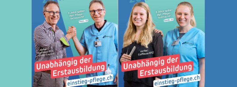 Die Kampagne unter www.einstieg-pflege.ch ist 2022 mit unbefristeter Laufzeit und Unterstützung der Branchen und Zentralschweizer Kantone gestartet. Sie ist Teil einer umfassenden Personalgewinnungsstrategie, die auch eigene Kampagnen und Maßnahmen für die Zielgruppen der Wiedereinsteigenden (www.wiedereinsteigen.ch) und der Schulabgängerinnen und -abgänger umfasst. Bei den Wiedereinsteigerinnen und -einsteigern geht es um jede Person, die schon einmal als diplomierte Pflegefachfrau oder diplomierter Pflegefachmann tätig war und in den Beruf zurückkehren möchte. Faktisch sind das hauptsächlich Frauen, die aus dem Beruf ausgestiegen sind, nachdem sie Kinder bekommen haben, weil es damals noch keine geeigneten Arbeitszeitmodelle zur Vereinbarkeit von Beruf und Familie gab. Für Wiedereinsteigende bieten wir Kurse an, um ihr Pflegewissen aufzufrischen, deren Kosten vollständig vom Bund und den Kantonen übernommen werden.